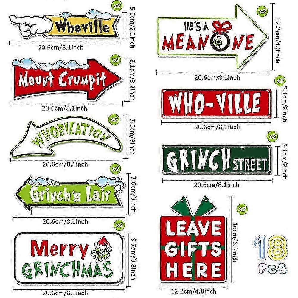 18Pcs Grinch Christmas Tree Decoration Paper Cards Sign Xmas Home Wall Ornaments