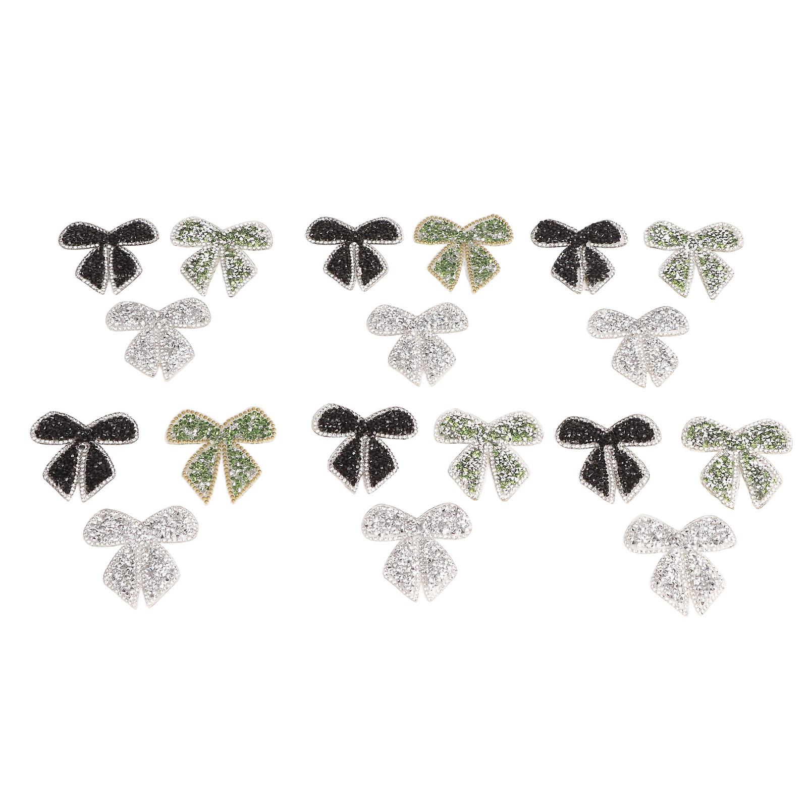 18pcs Bow Knot Rhinestones Patches Silver Black Green Exquisite Iron On Patches Sew On Patches for Clothing