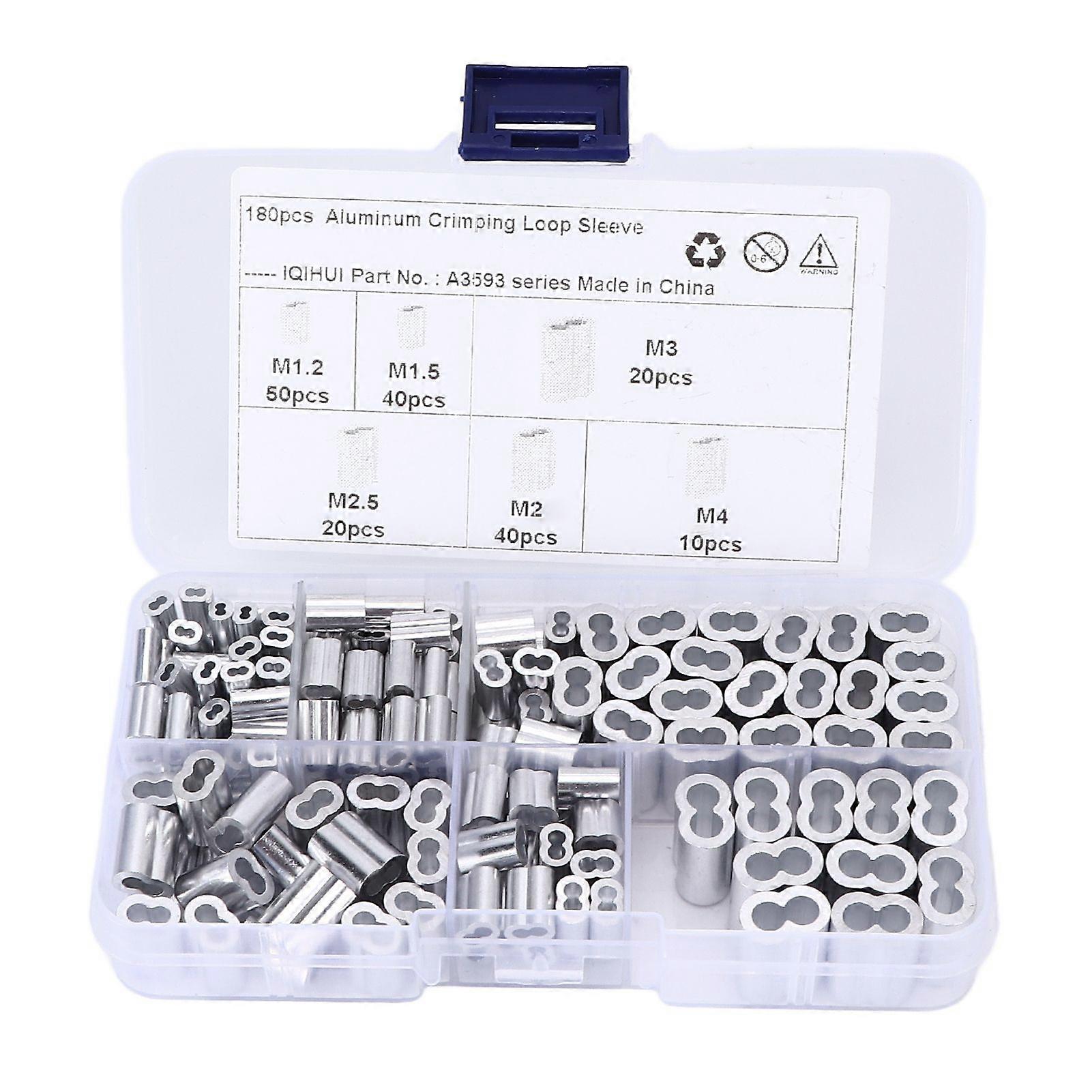 180pcs Crimping Loop Sleeve Kit 6Size Aluminum Double Barrel Ferrule Universal for Wire Rope Cable Line End