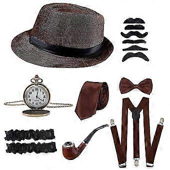 1920 مجموعة ملحقات زي غاتسبي للرجال مع قبعة العصابات الأقواس المرنة للعنق القوس ساعة الجيب