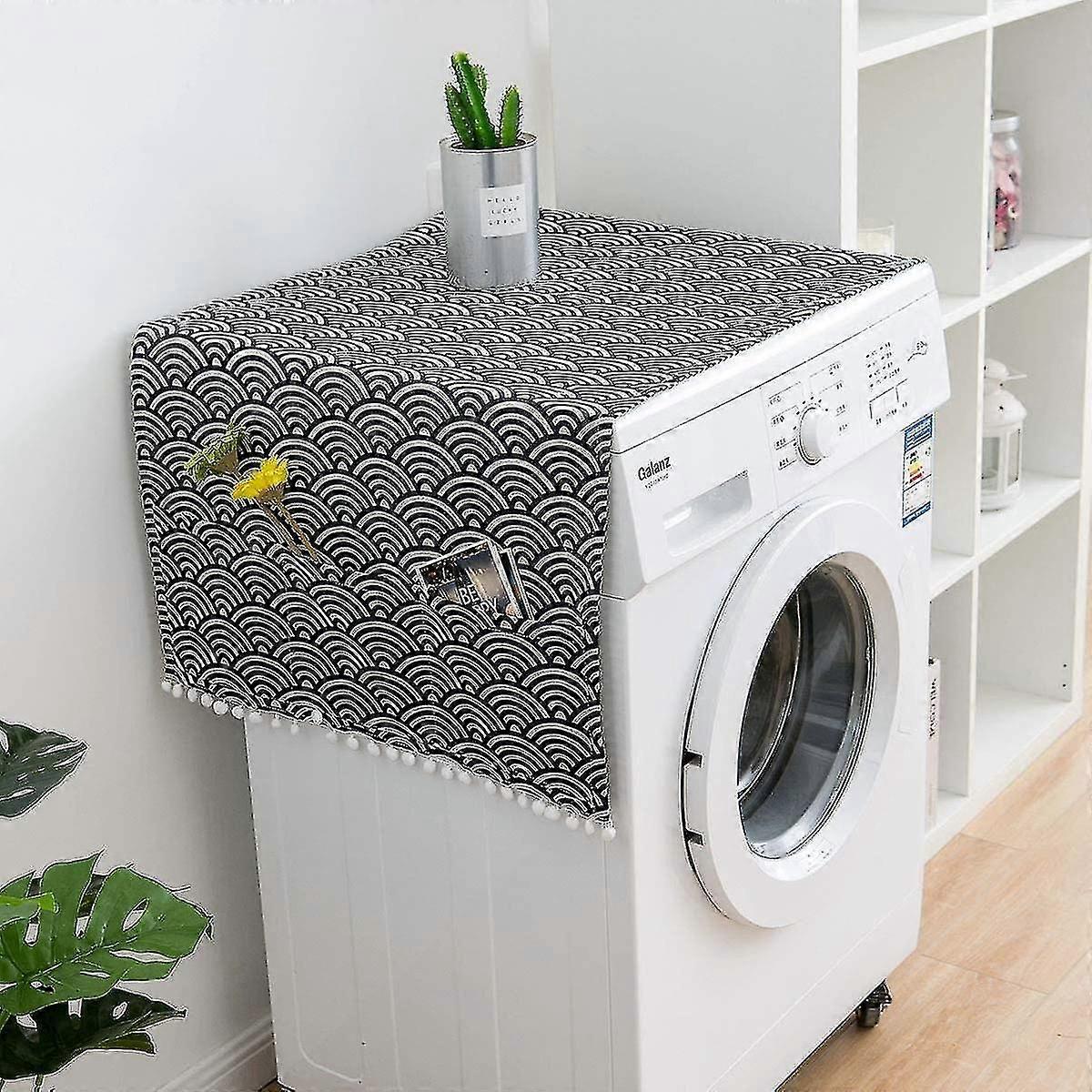 1pc Universal Washer Dryer Top Covers, Cotton Fridge Dust Proof Cover, Washing Machine Top Cover With 6 Storage Pockets Bags, Kitchen Bathroom Home De