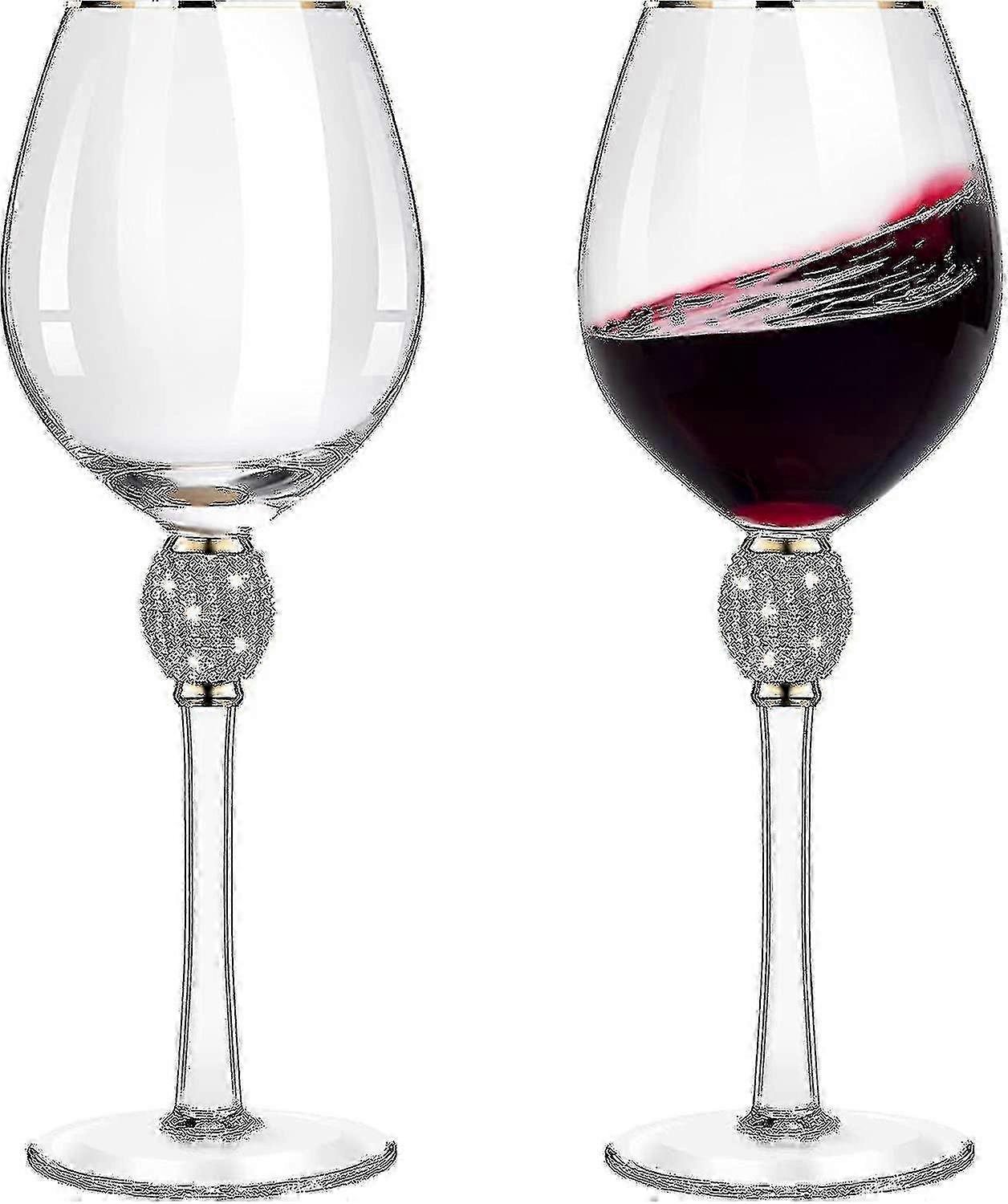 2 Pieces Rhinestone Red Wine Glass With Rim Tulip Shaped Diamond Wine Glasses Long Stem Glassware For Wedding, Parties, Anniversary (golden)