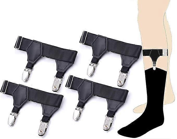 2 Pairs Men's Elastic Sock Garter Adjustable Support Strap Non-Slip Locking Clips, Black