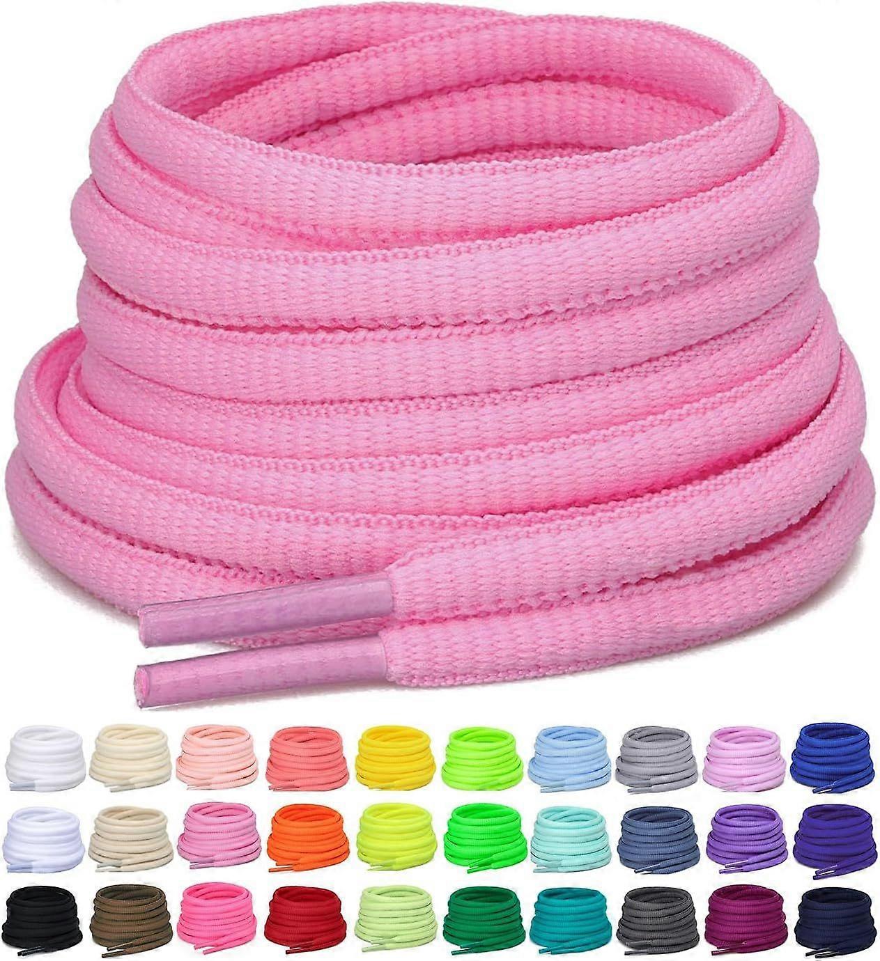 2 Pairs Oval Athletic Shoelaces 30 Colors 1/4" Half Round Shoe Laces for Sneakers 13 Pink