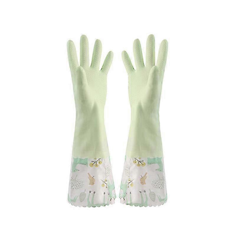 2 Pairs Dishwashing Rubber Gloves Waterproof Kitchen Gloves Bathroom Household Gloves Long Non-Slip Cleaning Gloves