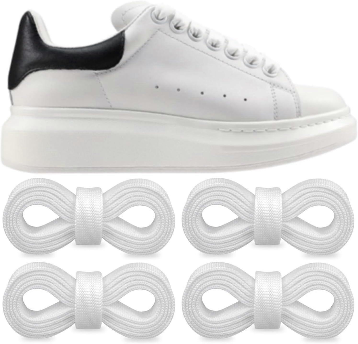 2 Pairs Shoelaces for Alexander McQueen Flat Shoe Laces Replacement Sneaker Shoes White