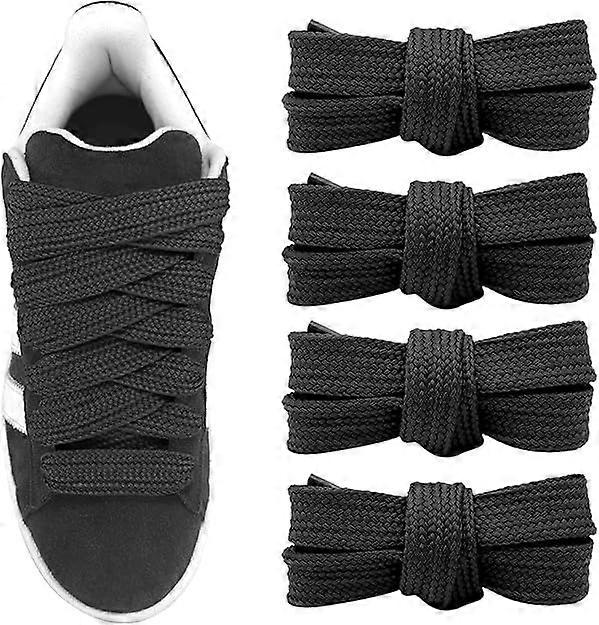 Compatibility: Perfect replacement Thick shoelaces for Skate Shoes, same material as the original shoelaces, which will make your shoe strings brand new again. 2 Pairs in a Pack: 2 pairs black fat shoe laces(4 laces),3/4" (2cm)wide, 27inch length, fits 3-4 shoe eyelets. Our Jumbo shoe laces can choose from many lengths. Please check your original shoe laces length before buying. Old School LookGreat 80's old school look, these chunky shoe laces belt are perfect for a vintage retro 80s look and give your favorite athletic shoes a new fashionable look. Premium Material:Thick shoeslaces belt are made of 100% lightweight polyester, fine and soft texture that won't add extra weight to shoes, comfortable and durable, full of texture! After-sale Service:We are so confident in our big shoestrings that we will replace them for free if they would ever break! Welcome to Visit Our Shop.