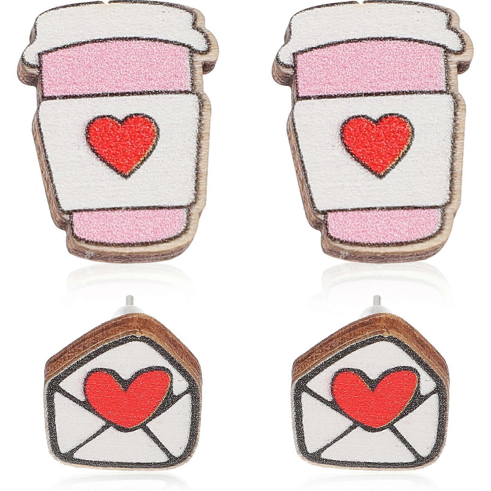 2 Pairs of Party Ear Studs Women Jewelry Valentine's Day Jewelry Couples Valentine's Day Gifts Pink