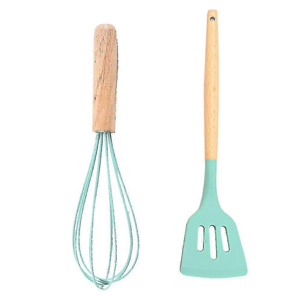 2 Pcs Non-stick Silicone Cooking Utensils Set For Home Or Picnic,wooden Handle Heat Resistant