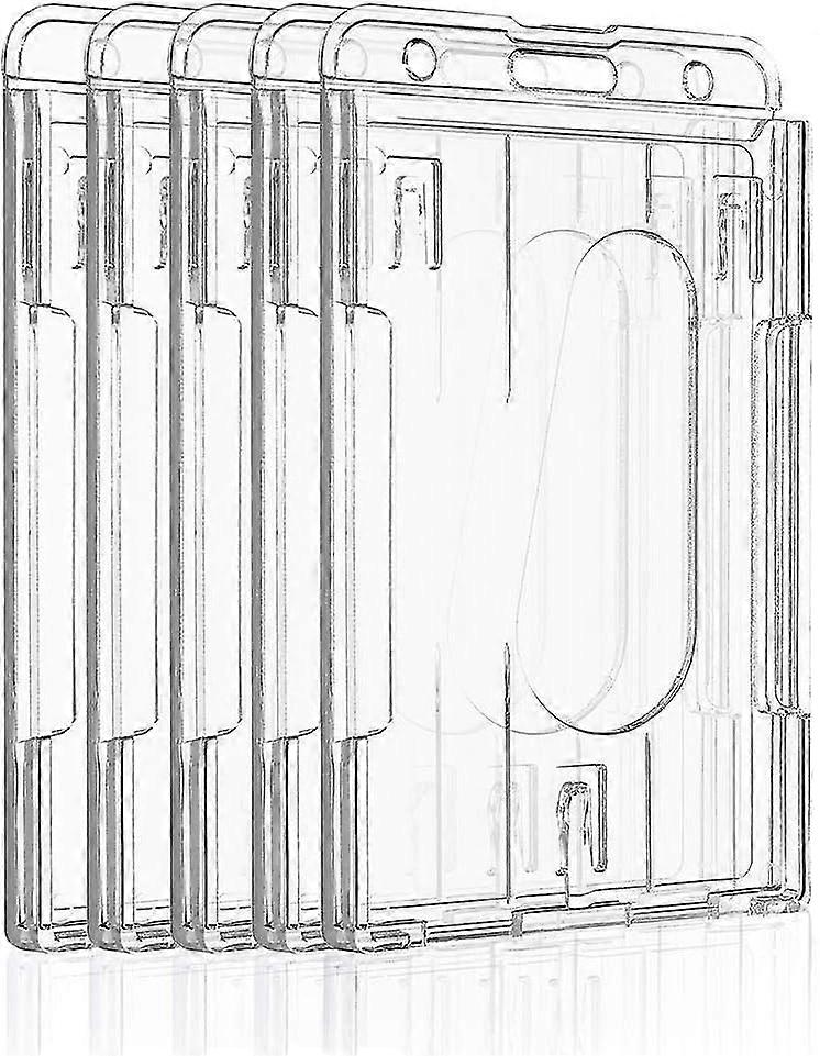 2 Card Vertical Badge Holder With Thumb Slot Clear Hard Pc Case Protector For Office School Id Cards, Credit Cards, Driver's License,5 Pcs