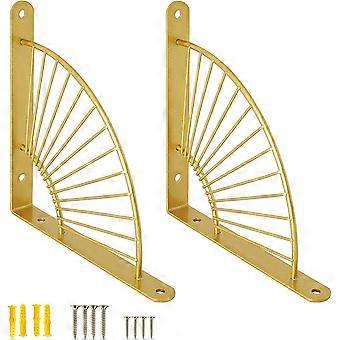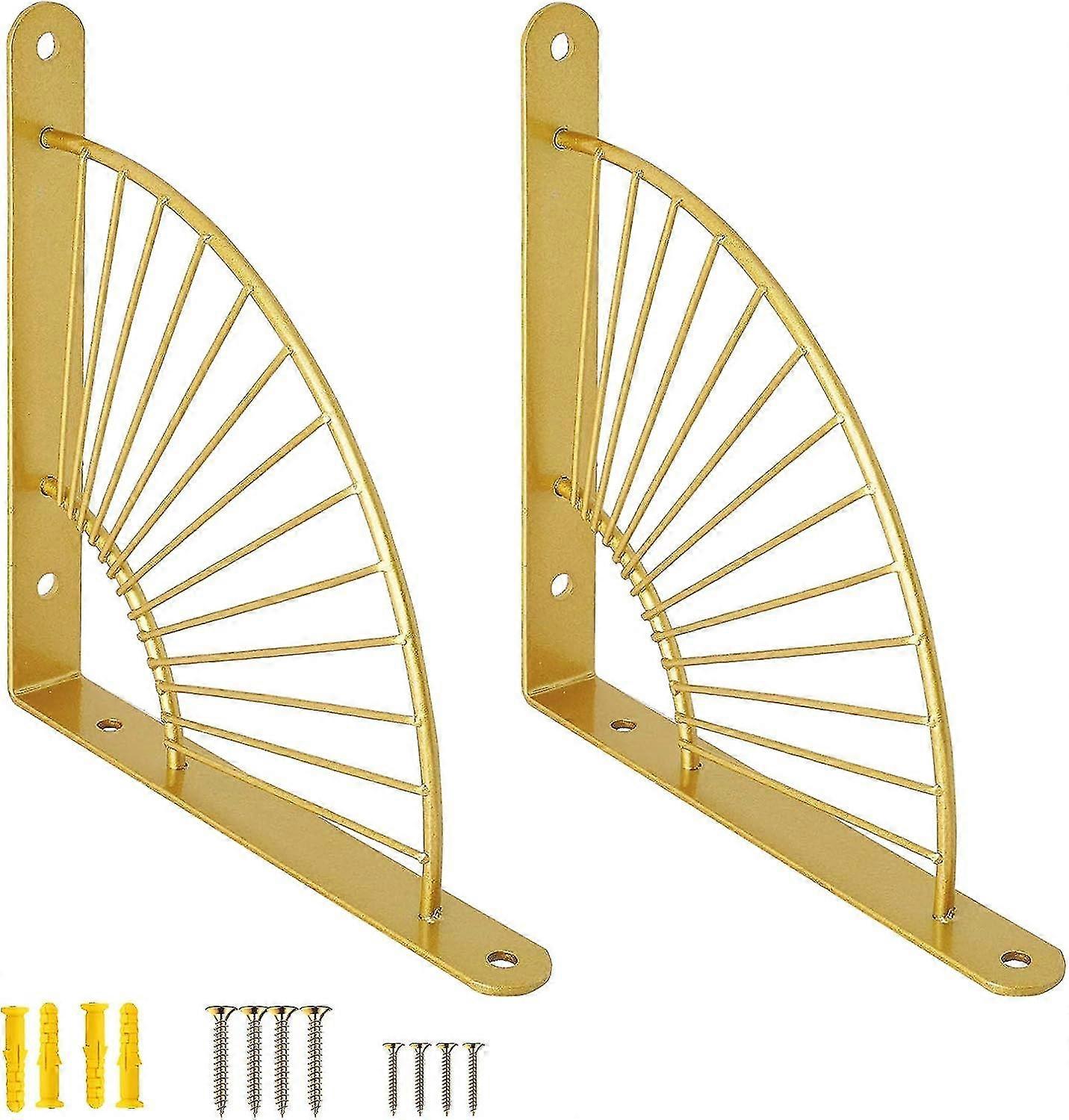 2 Pack Gold Shelf Brackets Wall Mounted Heavy Duty Metal Floating Shelf Bracket With Screws For Kitchen Bathroom (gold) 6"