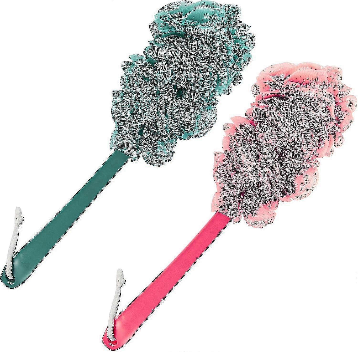 2 Pack Back Scrubbers For Shower, Loofah Sponge Brush For Body Exfoliation, Scrubbing Brush For Shower With Long Handle, Loofah Stick For Back, Bath A