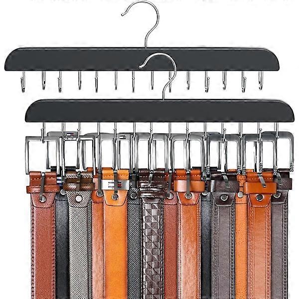 2-Pack Belt Hanger, Max 42 Belts, Closet Organizer with 14 Hooks, Sturdy Wooden Belt Hanger