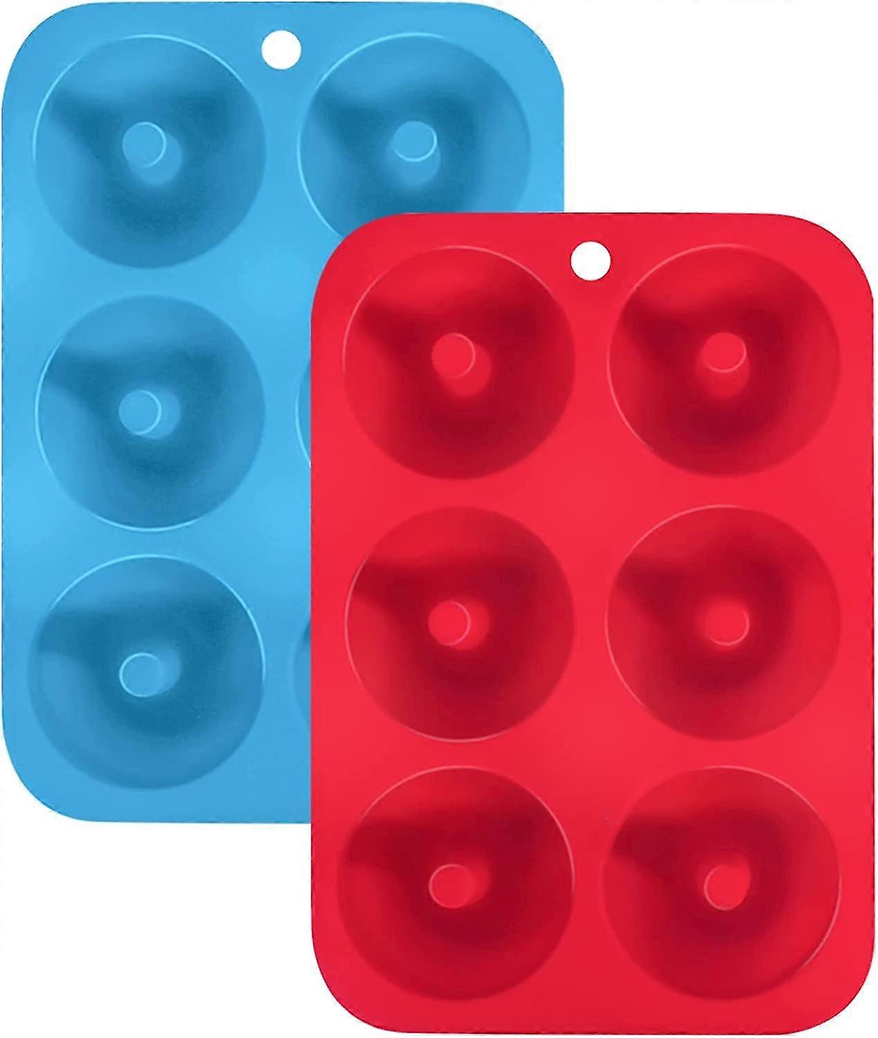 2 Pack Silicone Donut Molds, 6 Cavity Silicone Molds, Non-stick, Safe, For Cakes, Cookies, Bagels, Muffins, Blue, Red