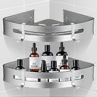 2 Pack No Drilling Adhesive Wall Mounted Bathroom Shower Shelf Storage Organizer With 4 Hooks (black)