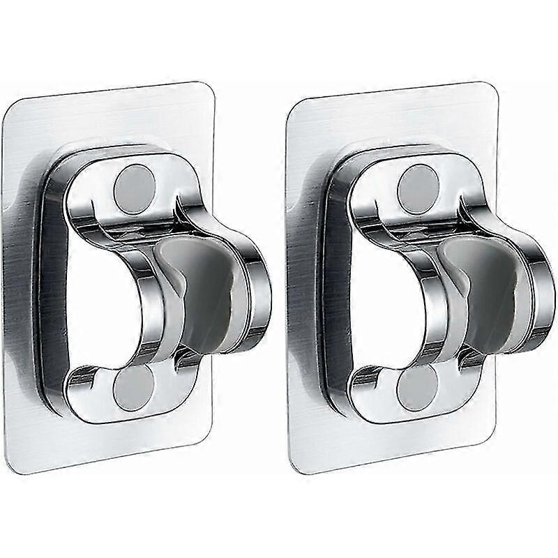 2 Pack No Drilling Shower Head Holders - Strong Adhesive - Adjustable Angle - Silver