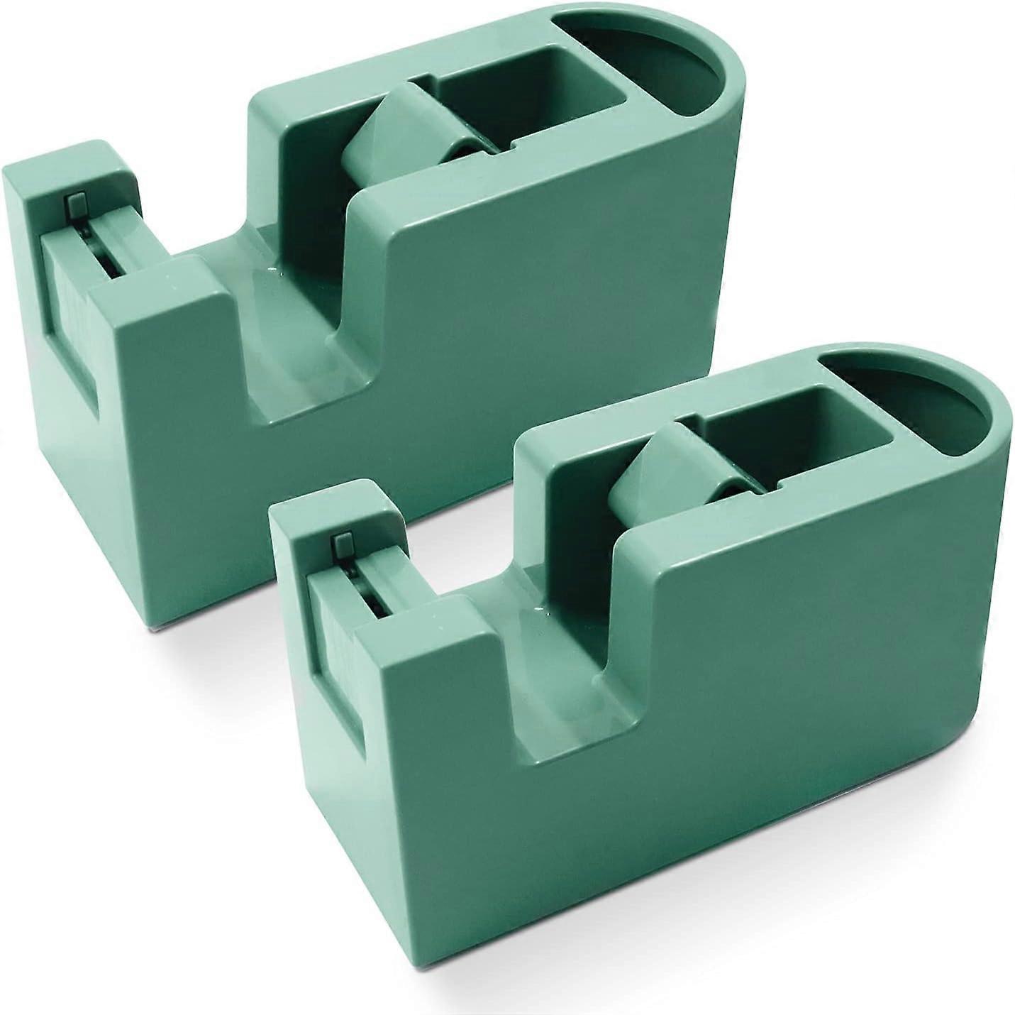2 Pack Tape Dispenser with Storage, Auto Cutter Head, Tape Holder, Non-Slip Base with Pen Holder, He