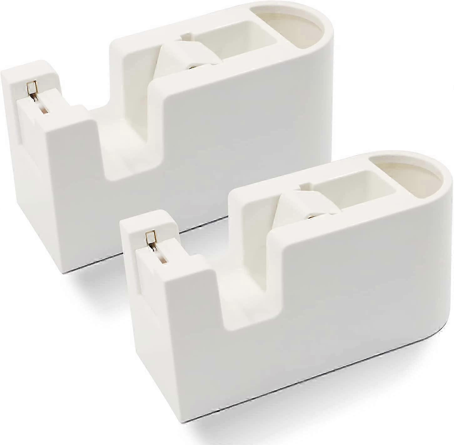 2Pack Adhesive Tape Dispenser Non-Slip Base with Pen Organizer(White)