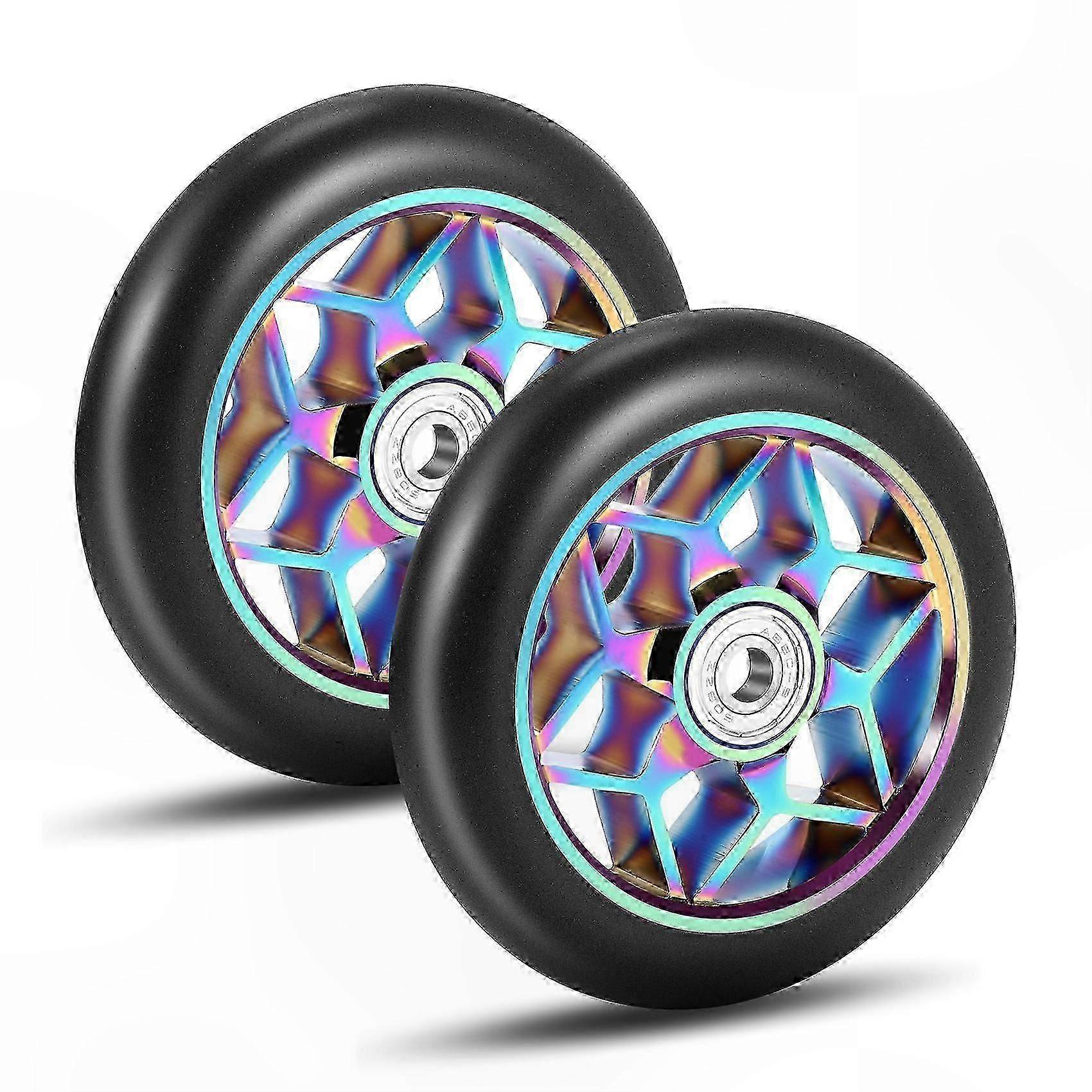 2-Pack 110mm PU Scooter Wheels with Bearings, Thick Stunt Design, Black Color