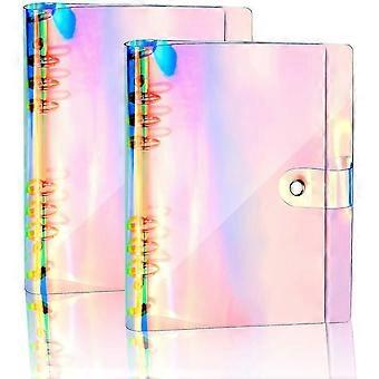 2 Pack A5 Binder Covers, Clear 6 Ring Binder Journal Binder Rainbow Binder