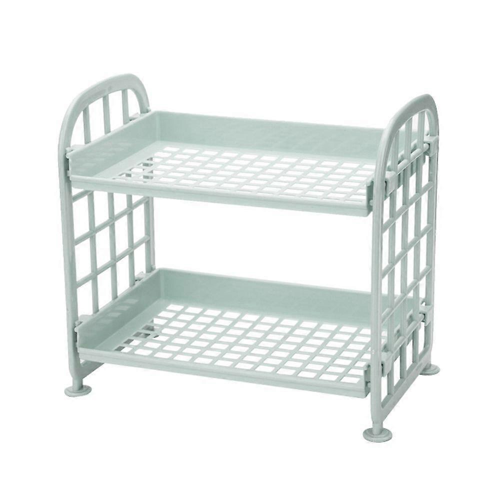 2 Layers Assemble Kitchen Desktop Living Room Plastic Finishing Shelf Bathroom Countertop Toilet Storage Shelf Organizer(Nordic Blue)
