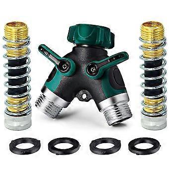 2 Way Garden Hose Splitter, Outdoor Utility Y Valve Hose Connector, Comfortable Rubberized Grip Faucet Adapter With 2 Spring Hose And 4 Rubber Washers