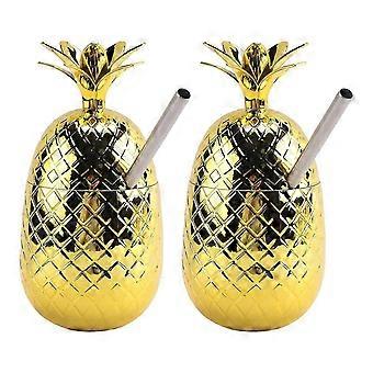 2 Pack Pineapples Drink Cups, 450Ml Pineapples Tumbler with Stretched Straw, Hawaiian Luau Party Cup