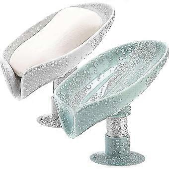 2 عبوة حامل صابون على شكل ورقة ذاتي التصريف حامل صحن الصابون ، حامل صابون سهل التنظيف غير المثقوب ، مع طبق صابون كوب شفط مناسب للاستحمام ، _
