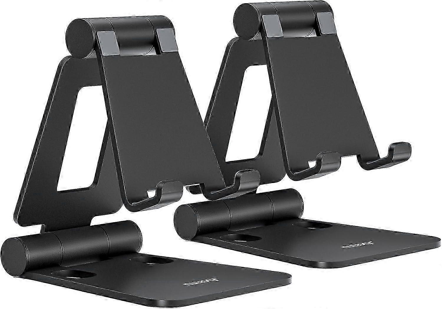 2 Pack Dual Folding Phone Stand, Fully Adjustable Desktop Mobile Holder Dock Aluminum, Compatible All Smartphones, Black