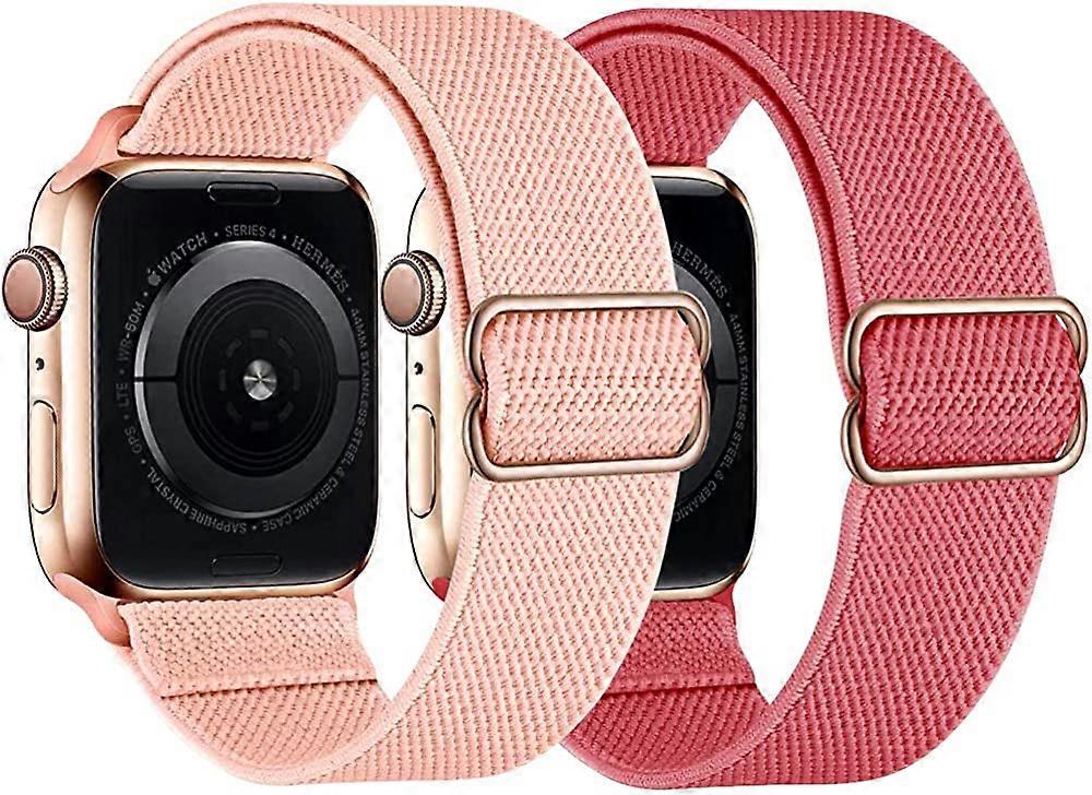 2 Pack Elastic Nylon Braided Watch Strap Compatible with Apple Watch 38mm 40mm 42mm 44mm Bands for Women Men , Sport Solo Loop Thin Wristbands for iPh