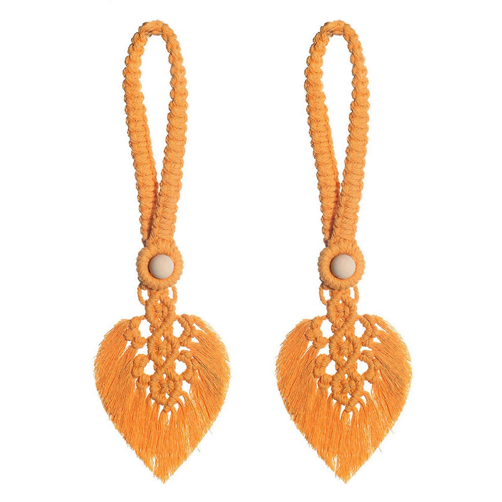 2Pack Curtain Tiebacks Handmade Holdbacks Hand-Woven Curtain Tie Back Holder Cotton Rope, Bohemian Home Decotation Yellow