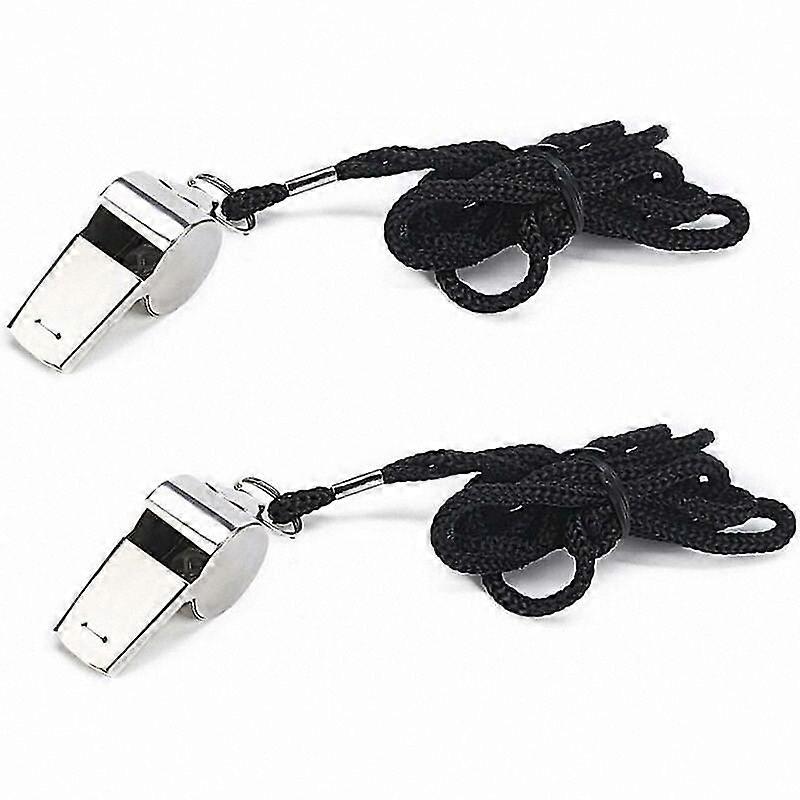 2-Pack Stainless Steel Whistles with Lanyards for Coaches and Referees