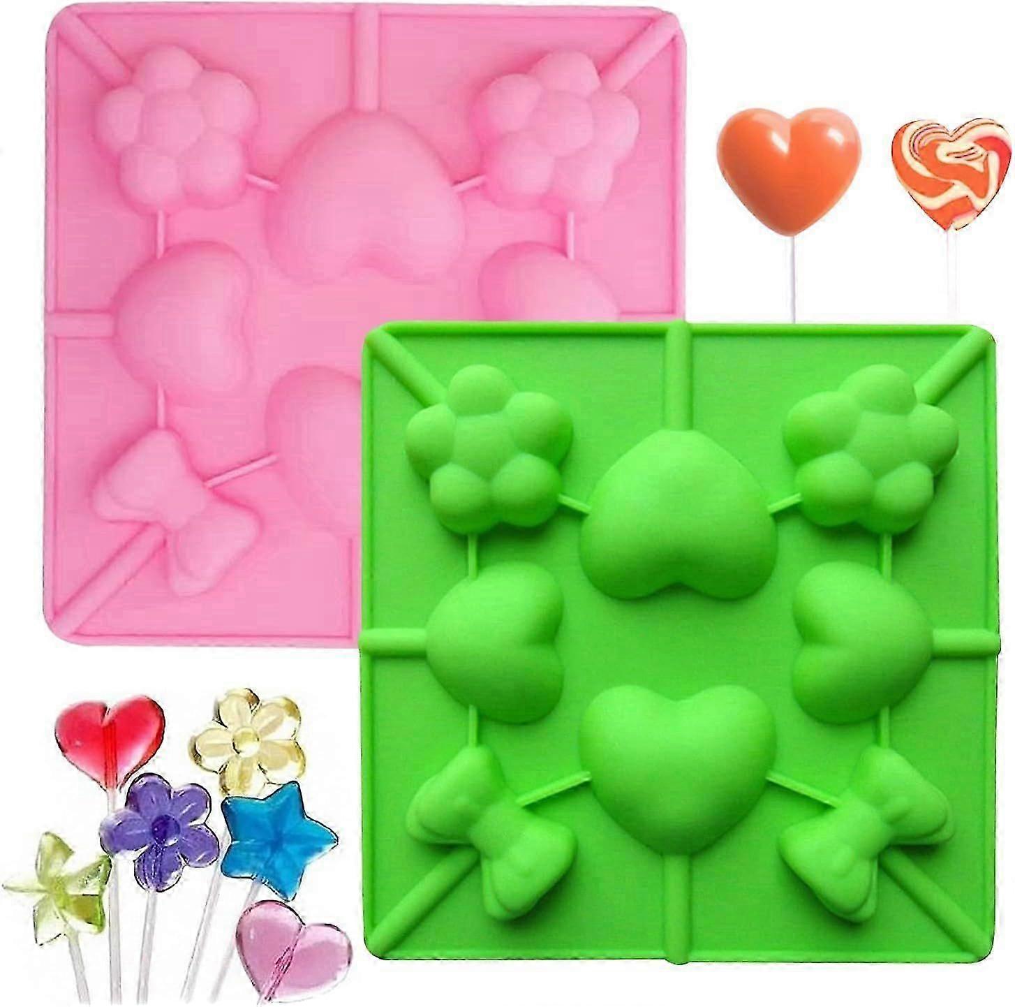 2 Pack Lollipop Molds Valentine's Day Heart Cherry Blossom Silicone Lolly Pop