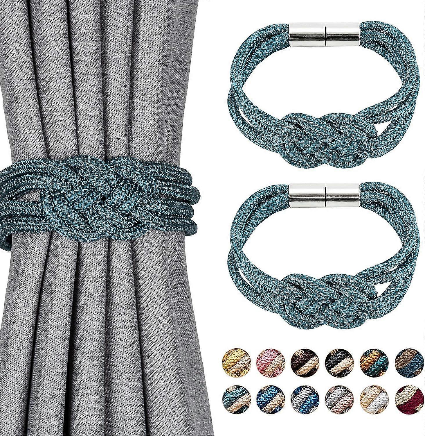 2 Pack Strong Magnetic Curtain Tiebacks Upgrade Nordic Simple Style Drape Tie Backs Double Color Weave Rope Knot Decorative Curtain Holdbacks for Home