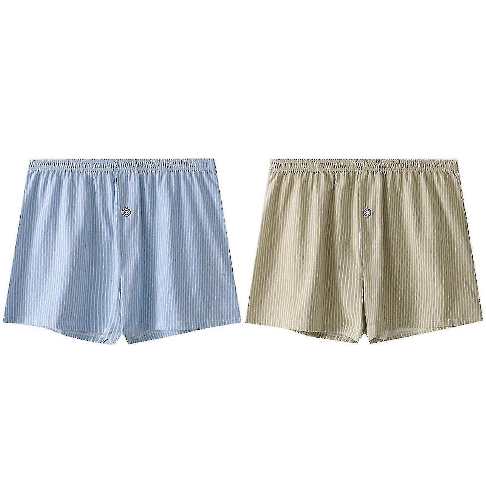2-Pack Men's Loose Breathable Sports Underwear - Striped Flat-Corner Boxers for Home Comfort & Active Wear, Style D