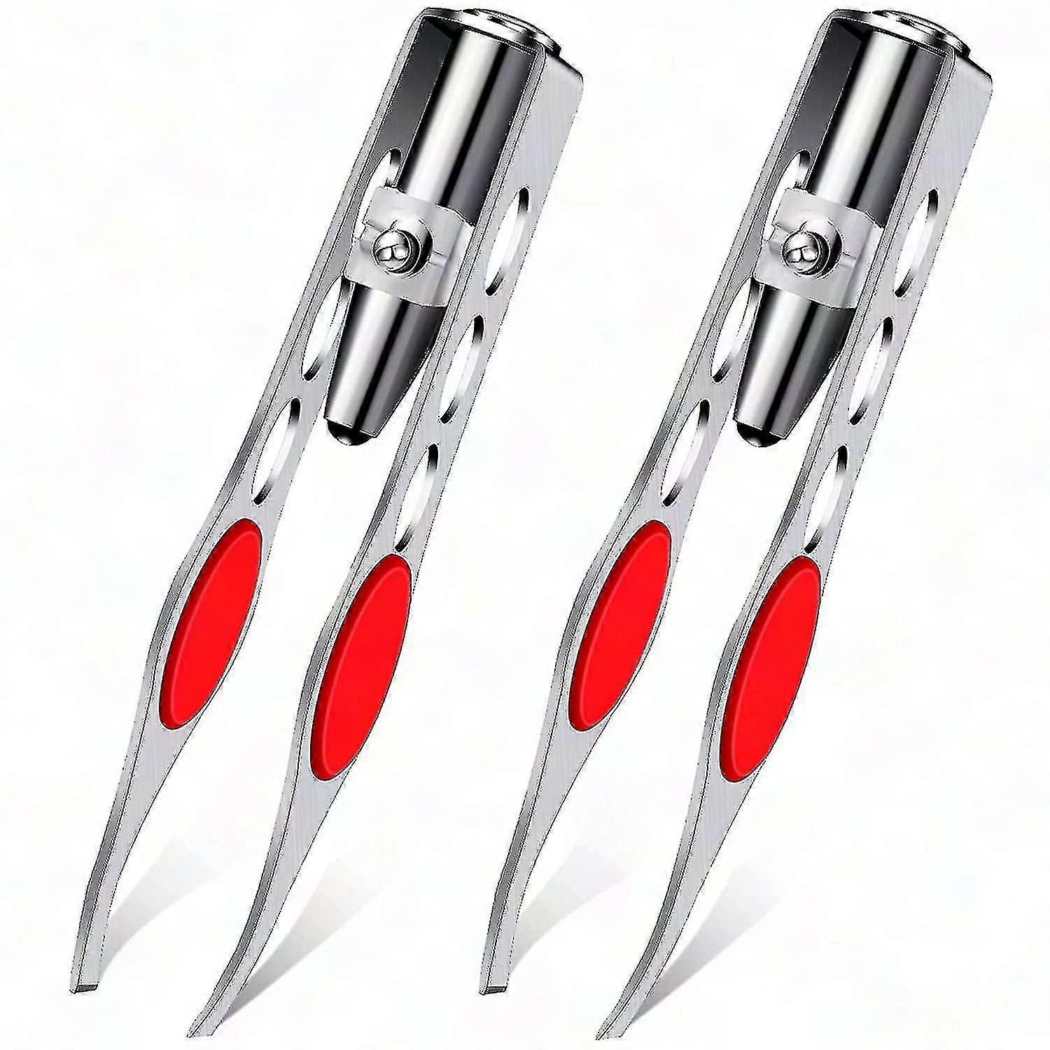 2 Pack LED Tweezers with Light - Stainless Steel Eyebrow Tweezers for Hair Removal & Makeup Tools