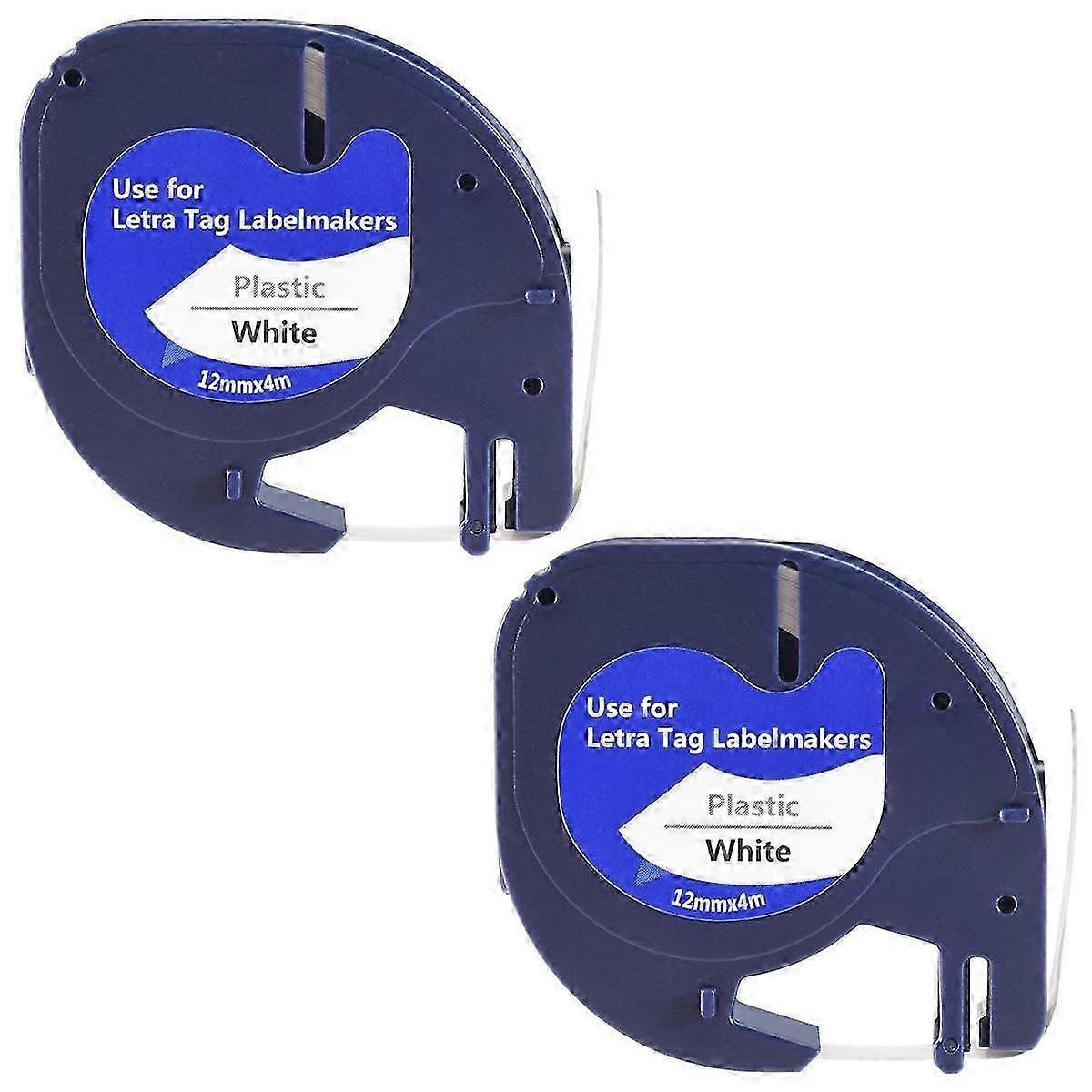 2 Pack Plastic Label Tapes for Dymo LetraTag 91201 Black on White (12mm x 4m) for LT-100H, LT-100T, LT-2000, QX50