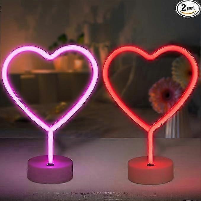 2 Pack Heart Neon Signs, LED Pink Heart Neon Sign Battery Operated or USB Powered Decoration Lamp, Neon Lights Heart Decor for Mothers Day Gifts, Bedr
