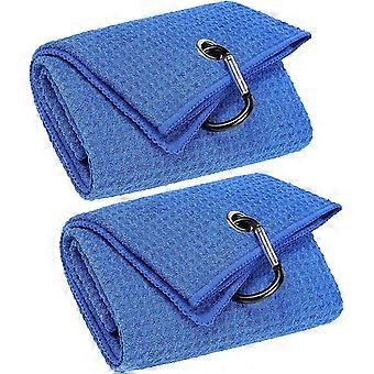 2 Pack Tri-fold Golf Towels, Premium Microfiber Fabric Waffle Pattern with Black Heavy Duty Carabiner Clip