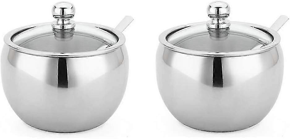 2 Pack 10 Oz Stainless Steel Sugar Bowl, Sugar Bowl, With Spoon And Clear Lidfor Suitable For Home And Kitchen