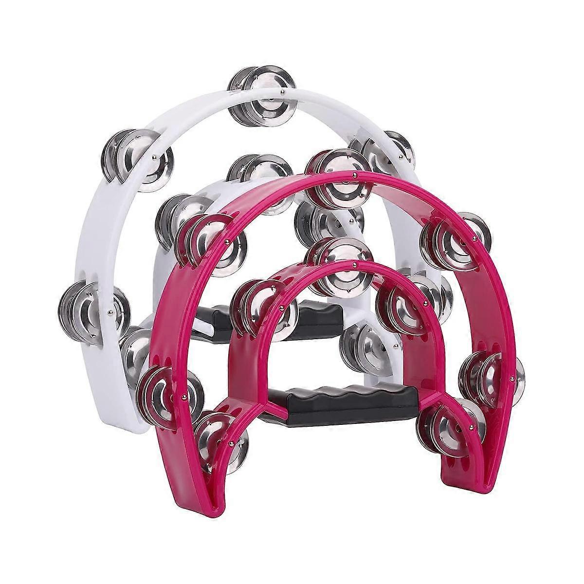 2Pack 10Inch Double Tambourine for Adult, Half Moon Musical Tambourine 20 Metal Jingles Hand Percus
