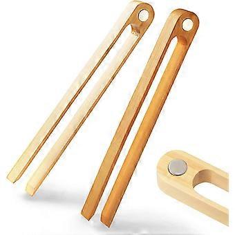 2 Pack 100% Natural Bamboo 22cm Magnetic Toast Tongs Made of Eco-Friendly Wood for Space Saving.