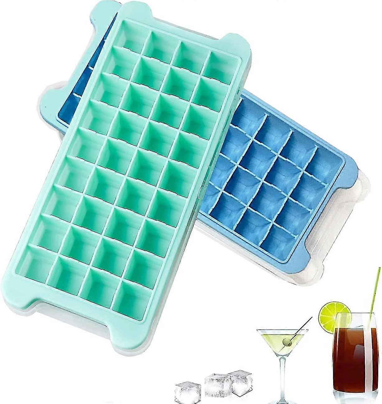 2 Pack Ice Cube Trays With Lids, 72 Cube Square Ice Making Moulds, Food Grade