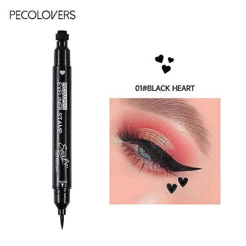 2 In 1 Black Liquid Eyeliner Double-head Moon Stamp Eye Liner Pencil Quick Dry Non-Smudge Long-lasting Easy to Use Eye Makeup