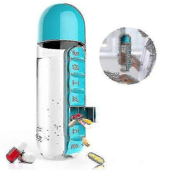 2 In 1 Pill Organizer With Water Bottle Daily Pills Box For Travel Sports