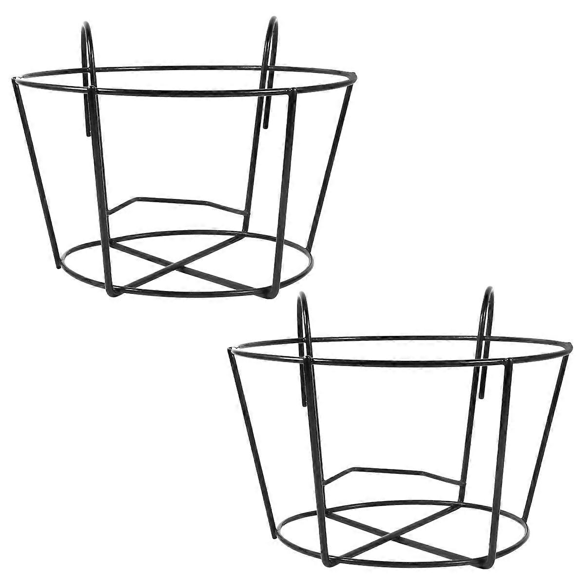 2PCS Iron Hanging Flowerpot Bracket Plant Pot Holder Planter Supporting Shelf for Home Garden Balcony (Black, Size XL)