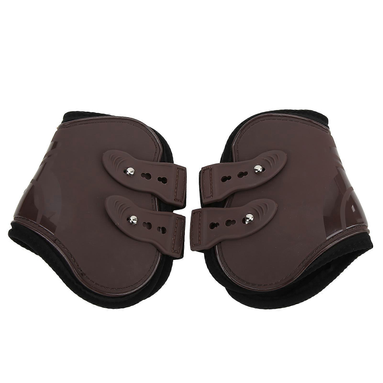 2pcs Horse Hind Leg Boots PU Shell Adjustable Neoprene Horse Leg Guard for Equestrian Show High Speed SportsBrown Hind Leg M