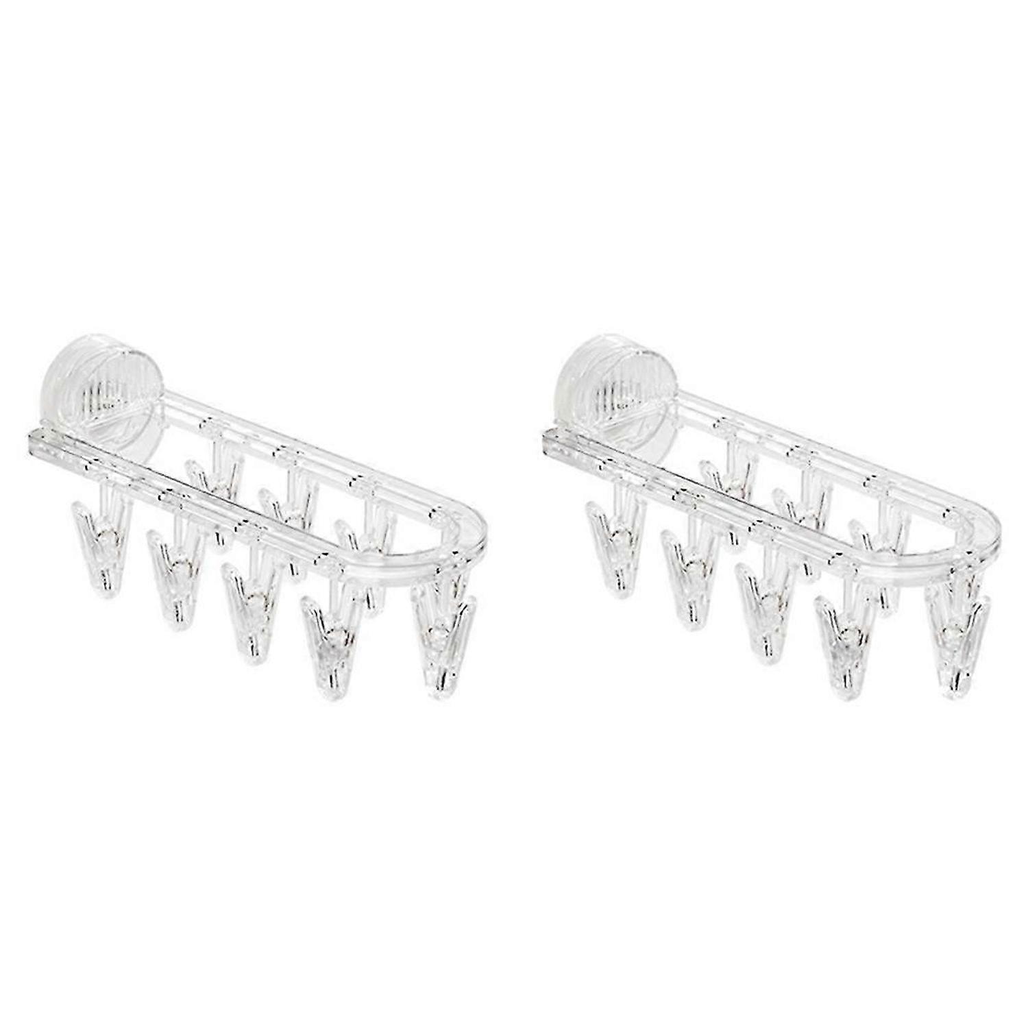 2PC Bathroom Suction Cup Drying Rack Folding Socks Drying Rack Household Clothes Rack Multi Clip Drying Socks Artifact,B