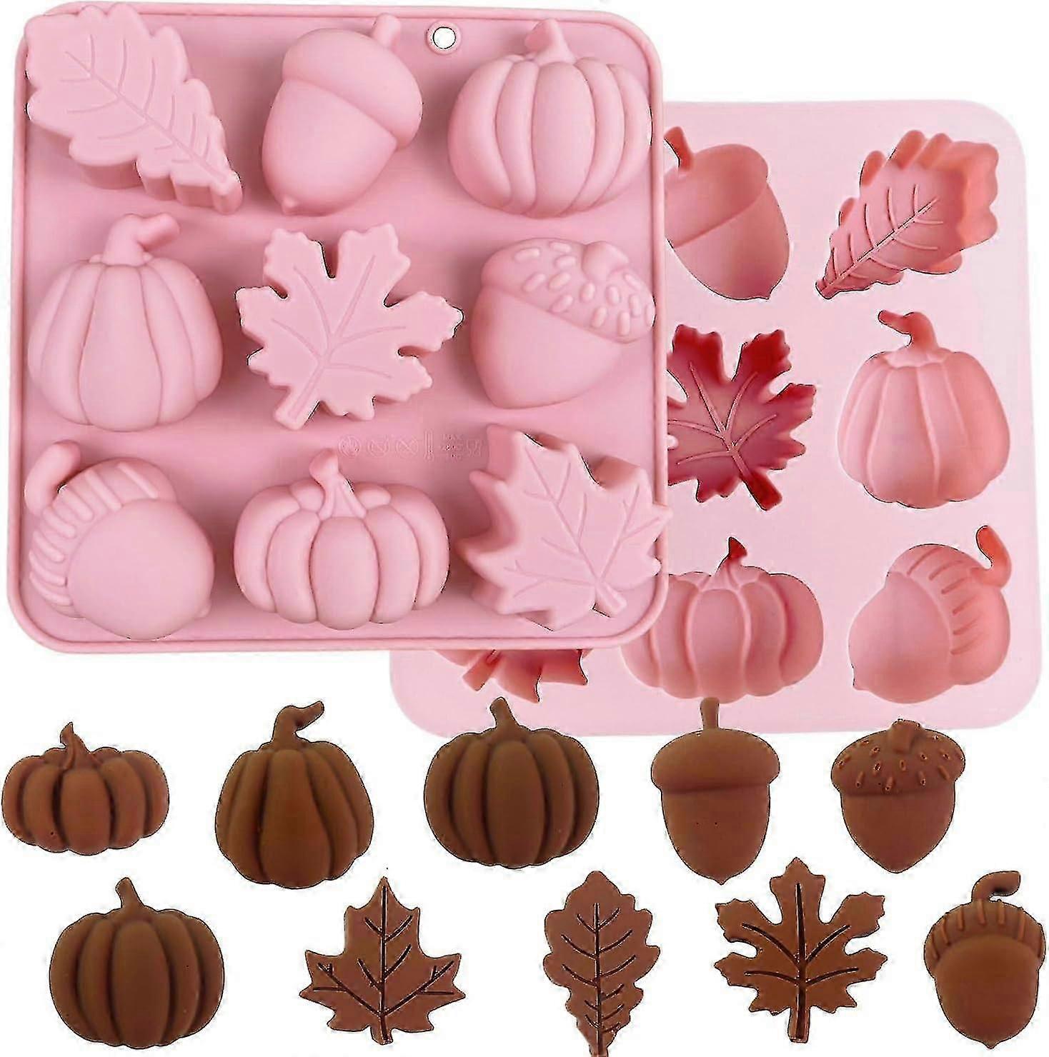 2-piece Autumn Silicone Chocolate Molds Maple Leaf, Acorn And Pumpkin Shape 3d Chocolate Candy Molds For Fall, Thanksgiving, Harvest Themes