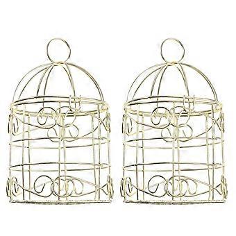 2PCS Retro Golden Bird Cage Iron Art Hollow-out Bird Cage Bird Foraging Basket